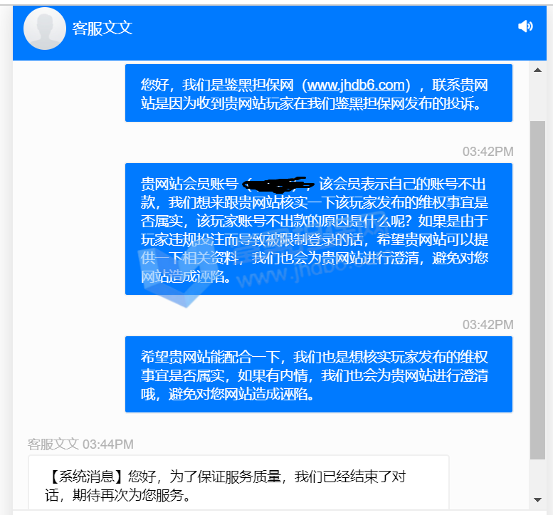 3.用户提交维权申请后资料不齐全,需在一周内补齐鉴黑担保网客服要求的资料,若超过一周时间没有完善维权信息,维权将因资料不全拒绝受理;