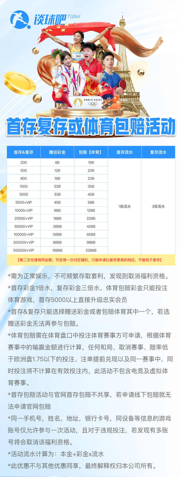 3.活动彩金以优惠卷方式进行派发,彩金需完成5倍流水。