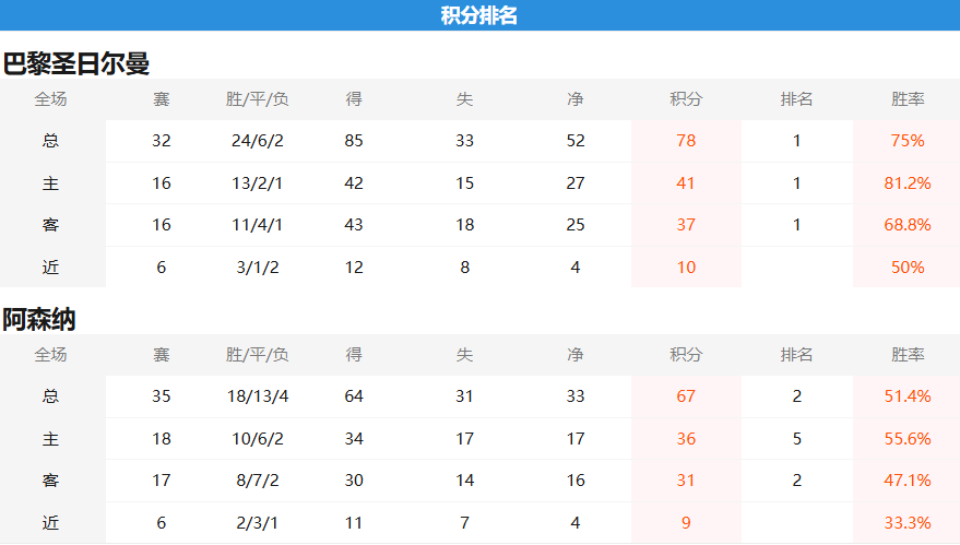 晋级前景:阿森纳稍占优(60%),但巴黎次回合回到主场仍有翻盘可能。