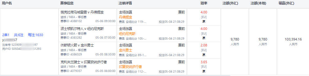 3.盈利 :投注额 X (标准盘赔率-1)=100 X 0.94=94