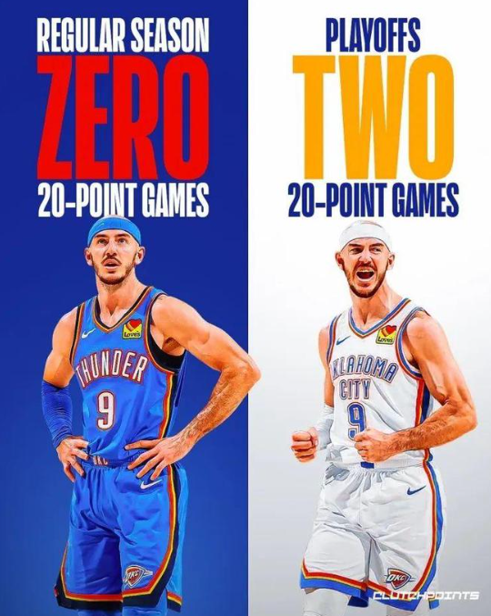 亚历山大本赛季迄今是丰收的一年,常规赛MVP,得分王,最佳一阵,季后赛西部冠军+MVP,现在他距离捧起总冠军只差最后4场胜利,相信他会和队友一起坚持战斗到底。
